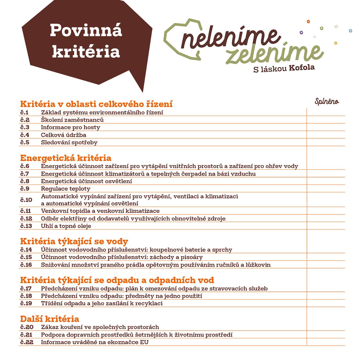 Abyste získali českou certifikaci Ekologicky šetrné služby, potřebujete splnit 22 povinných udržitelných kritérií a dosáhnout alespoň 20 bodů v dalších volitelných kritériích. Všechny služby, které poskytujete, musí splňovat právní požadavky země nebo zemí, ve kterých se vaše ubytovací zařízení nachází. A zároveň je potřeba všechny vaše zaměstnance legálně zaměstnat i pojistit. Po splnění všech předpokladů za ekoznačku ještě zaplatíte jednorázový plus roční poplatek.