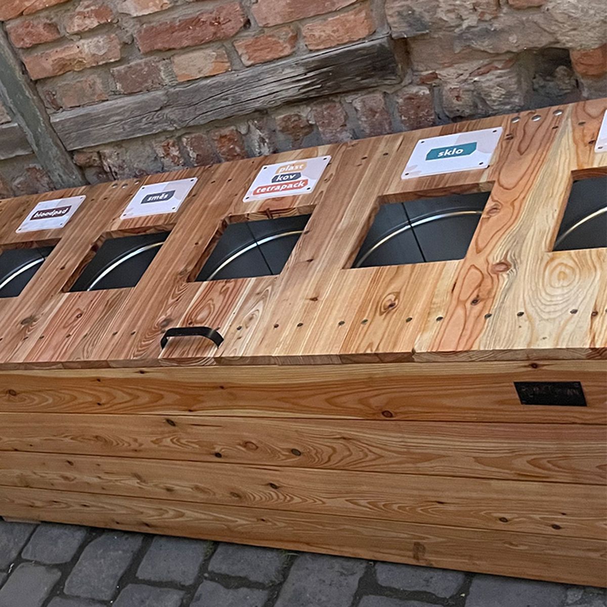 Koše do exteriérů můžou vypadat i pěkně. Nechte si je navrhnout na míru. Vybírat můžete mezi různými variantami dřeva, velikostmi i druhy odpadu, které do něj chcete třídit.