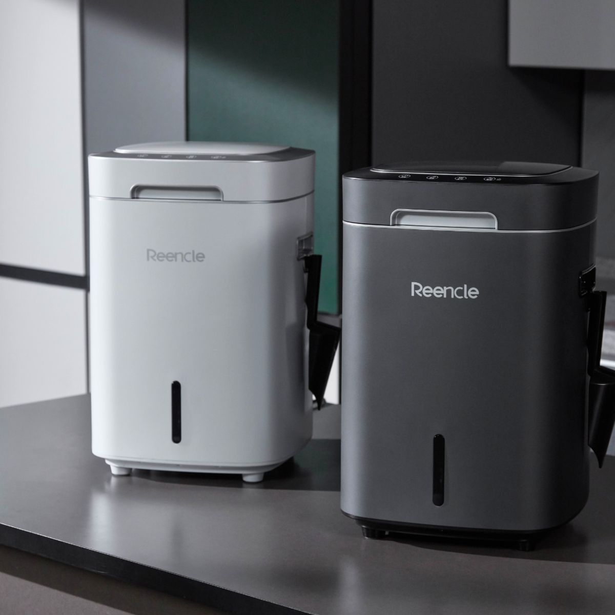 Reencle, malý elektrický kompostér, s odpadem z kuchyně naloží rychle, hygienicky a jednoduše. Zbytky dokáže s pomocí mikroorganismů rozložit na kompost už za 24 hodin – a vy se pak můžete rozhodnout, jestli ho odnesete do popelnice, pohnojíte s ním pokojovky nebo ho rozdáte zaměstnancům.